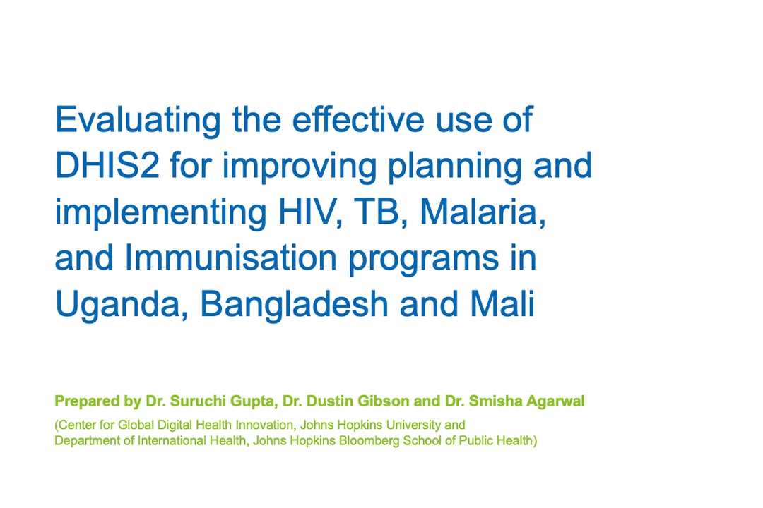 • Evaluating the effective use of DHIS2 for improving planning and implementing HIV, TB, Malaria, and Immunisation programs in Uganda, Bangladesh and Mali