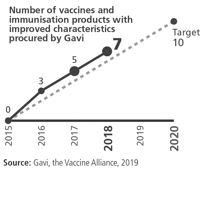 What we measure: Number of vaccines and other related products with improved characteristics procured compared with the baseline year.