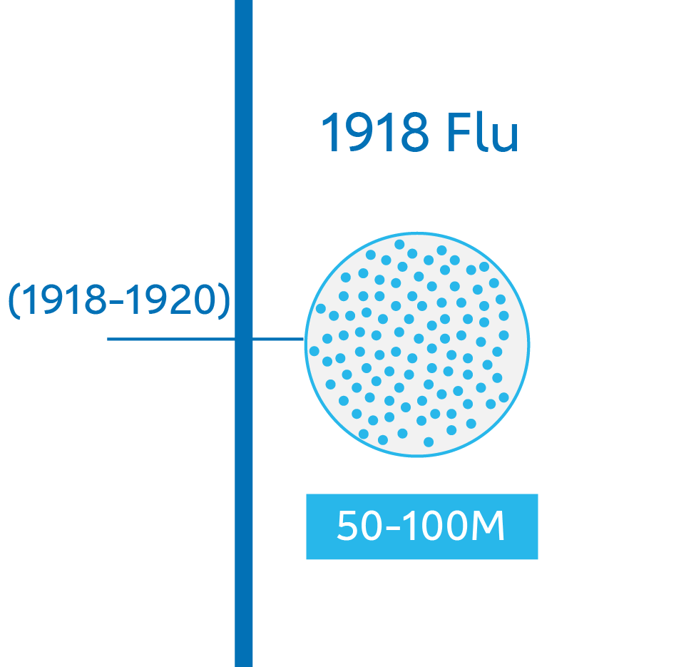 It arrived in Bombay in June 1918 on troop ships returning soldiers from the battlegrounds of World War I and, by year’s end, had claimed possibly as many as 18.5 million lives in South Asia. Freetown, Sierra Leone, lost four percent of its population in three weeks. Persia may have lost as many as 22 percent of its people. 50 to 100 million people the world over died before rising immunity blunted the virus’s threat.