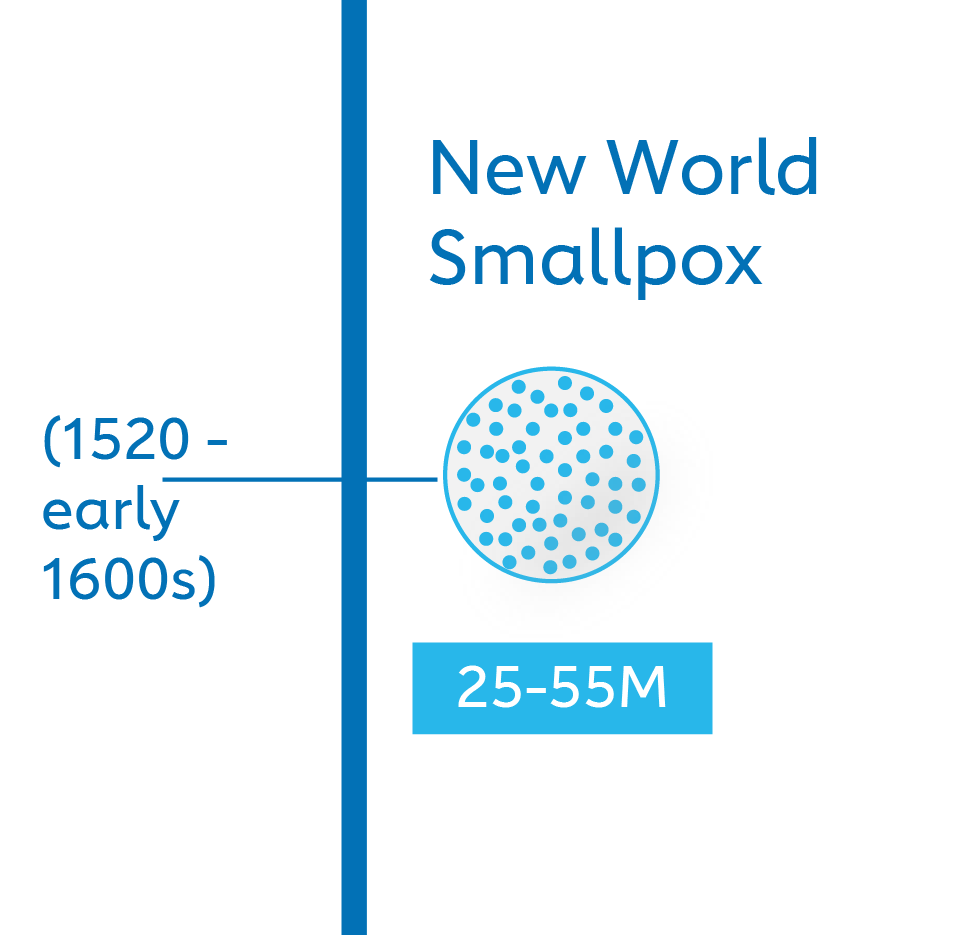 New World Smallpox: 25-56 million (1520 – early 1600s)