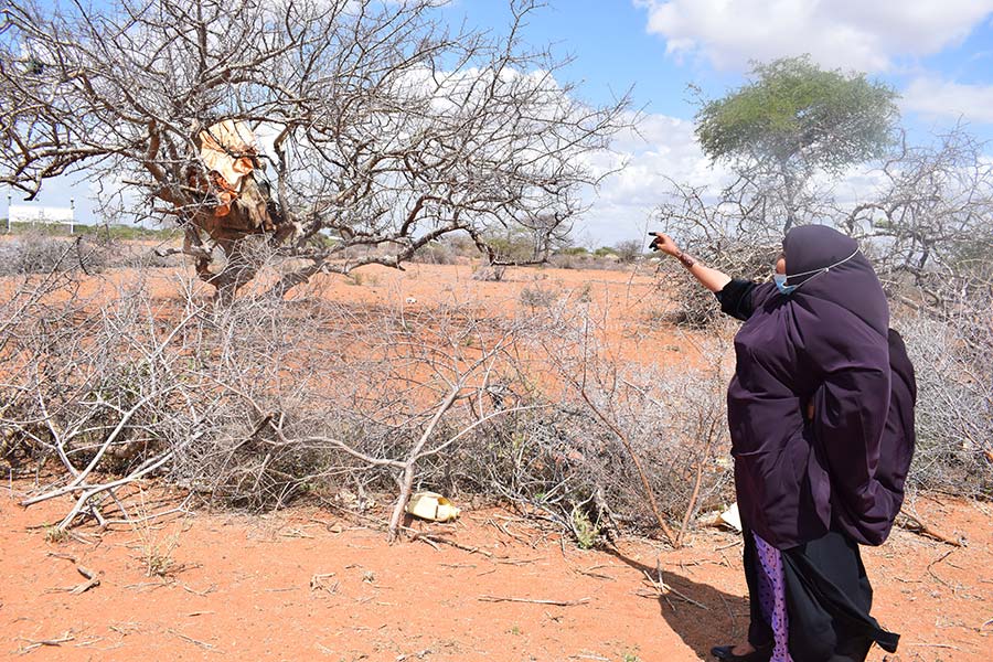 Walking under the searing heat, Khadija Maalim, a popular social media influencer, is joined by community members in Atheley village, Garissa county, as she looks for a good location to shoot a TikTok video. While they walk, she offers useful information and tips on COVID-19 containment to the villagers.